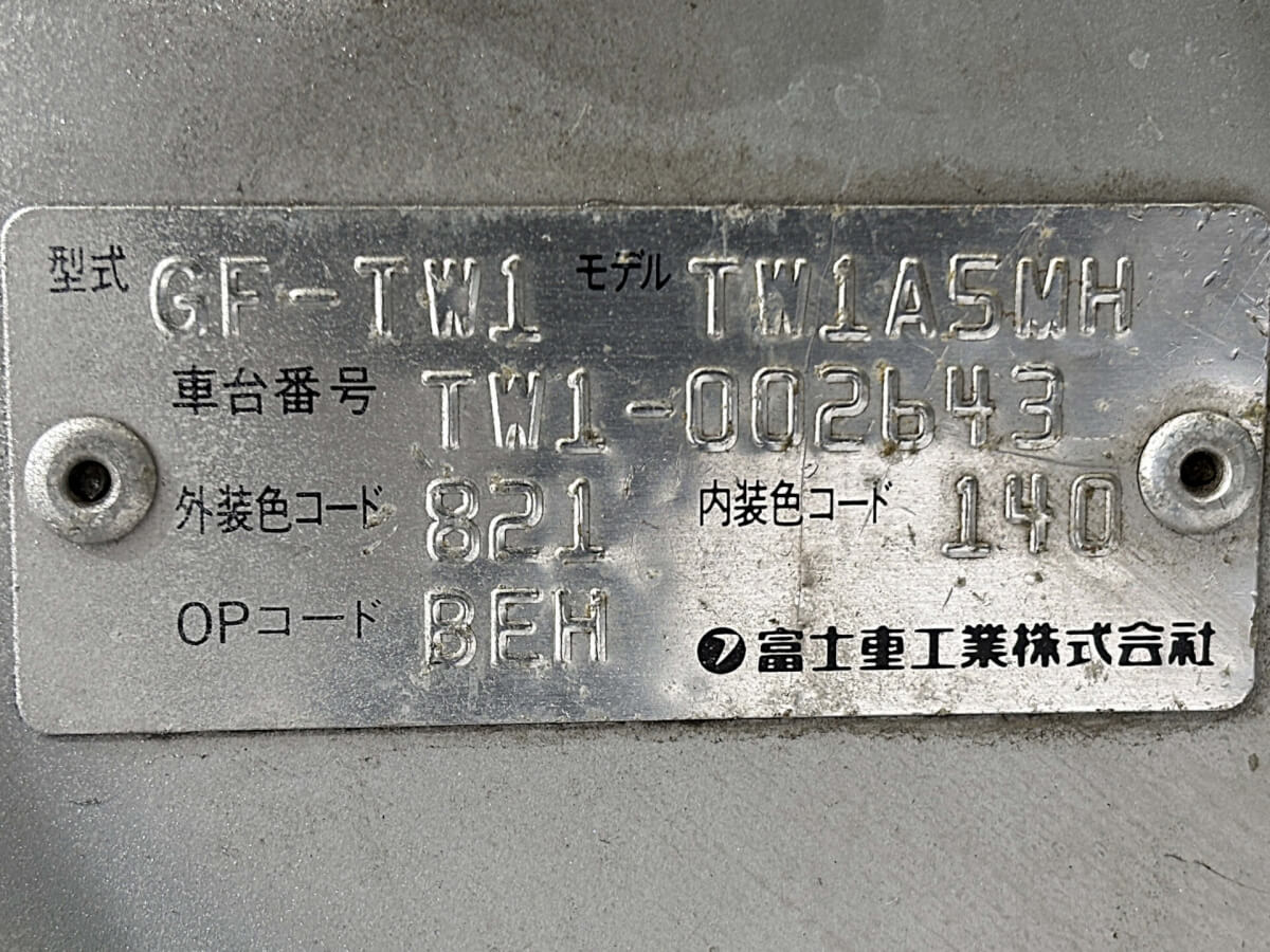 | Model Code | GF-TW1 | VIN | TW1-002643 |