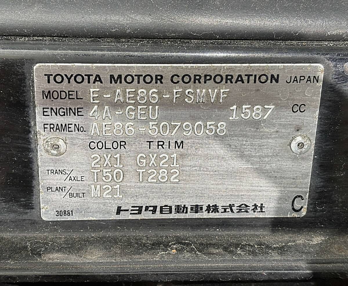 | Model Code | E-AE86 | VIN | AE86-5079058 |