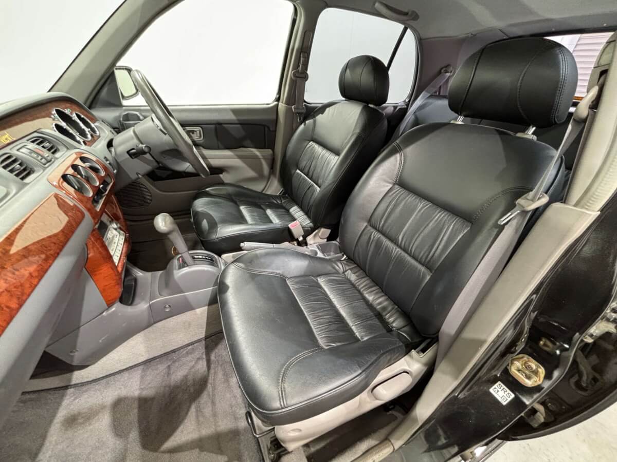 - Graceful and Elegant Mitsuoka Viewt – A Deep, Exquisitely Finished Imperial Nighthawk Black Exterior Paired with Supple Black Leather Seats, Evoking the Rich, Broken-In Texture of a Well-Worn First Baseman’s Glove, Built on Nissan’s Trusted Platform, Where Timeless Classic Beauty Meets Modern Refinement